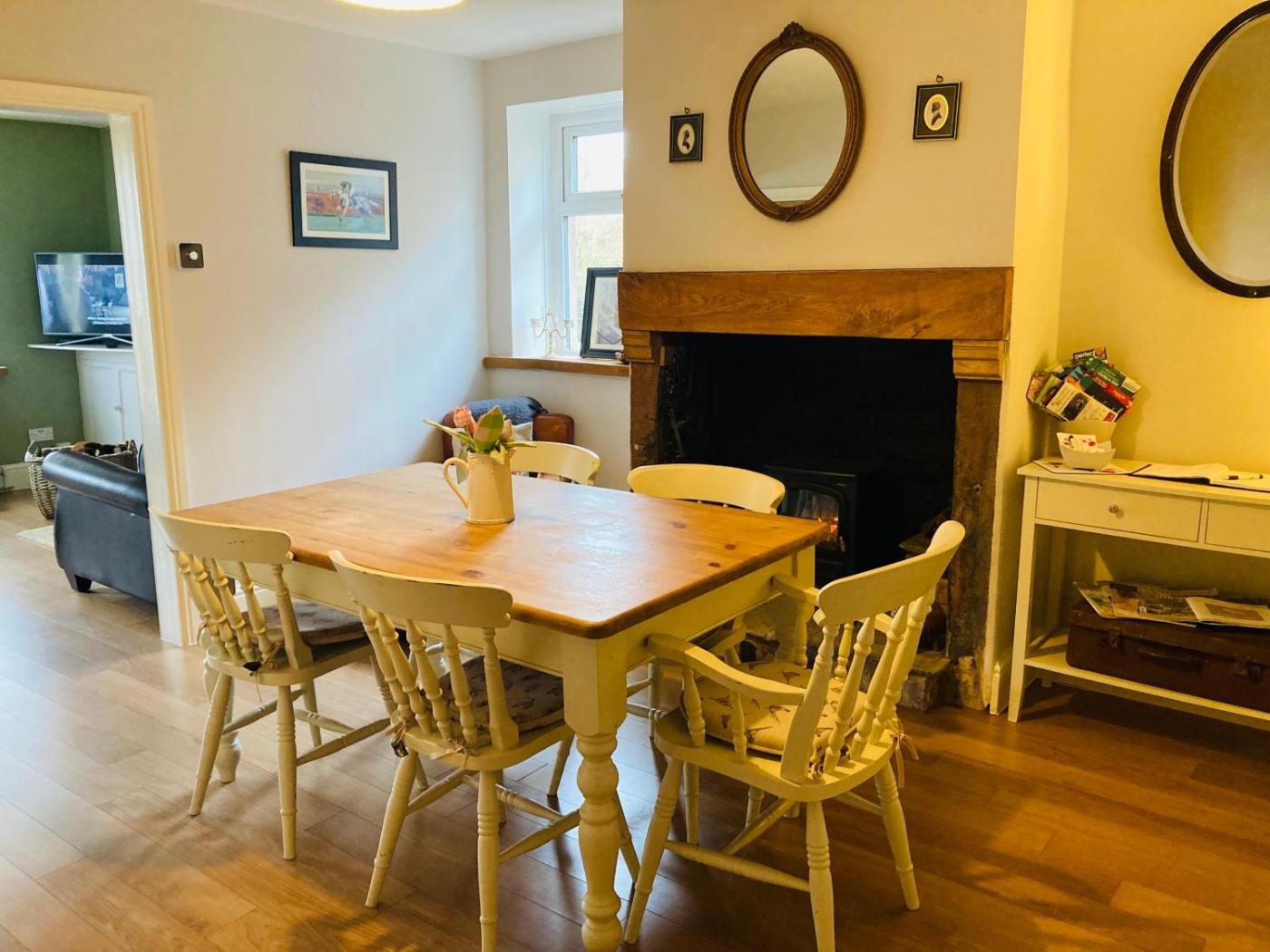 Two-Bedroom House. This holiday home features a fireplace. Meals can be prepared in the well-fitted kitchen, which has a stovetop, a refrigerator, kitchenware and an oven. The holiday home has parquet floors, a seating area with a flat-screen TV, a washing machine, a private entrance, as well as a dining area. The unit has 5 beds.