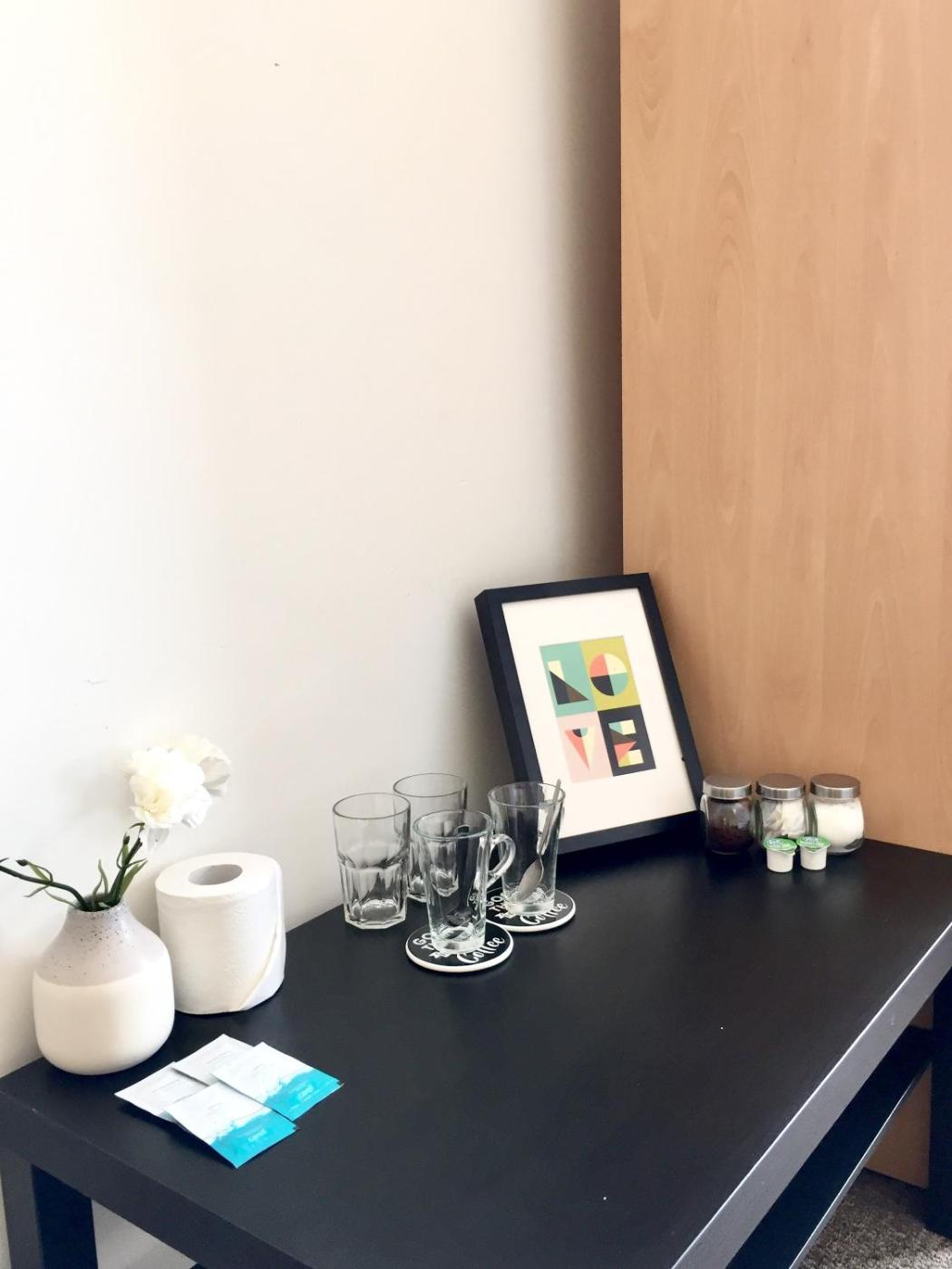 Guests can also relax in the shared lounge area.