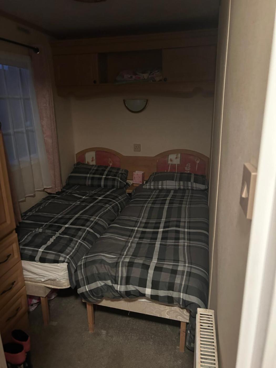 Caravan. The mobile home offers a seating area, a wardrobe, an electric kettle, heating and a flat-screen TV. The unit offers 6 beds.