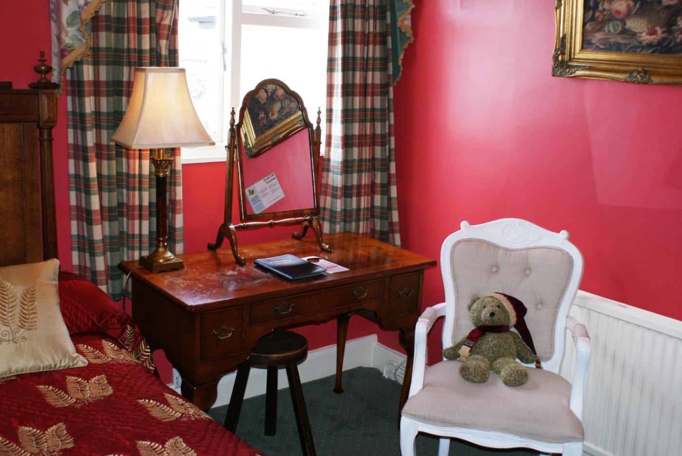 Each room is traditional in style, with a carpeted floor and en suite bathroom. Each also has a flat-screen TV for guests to use, and facilities for making tea and coffee.