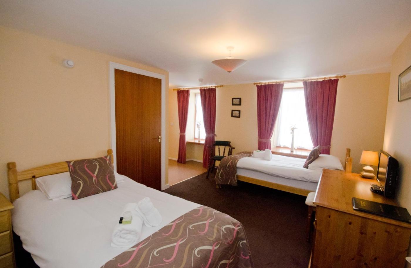 Family Room. The Leader room is a large and spacious en suite family room with views of the rear garden and the foothills of Ruberslaw. It has a smart TV, teacoffee making facilities, complimentary toiletries and a hairdryer. Free WiFi is also available. ;