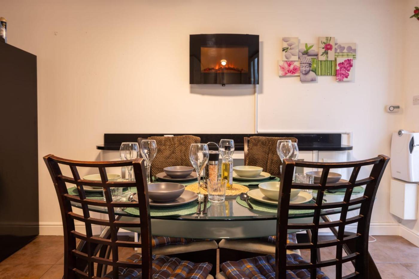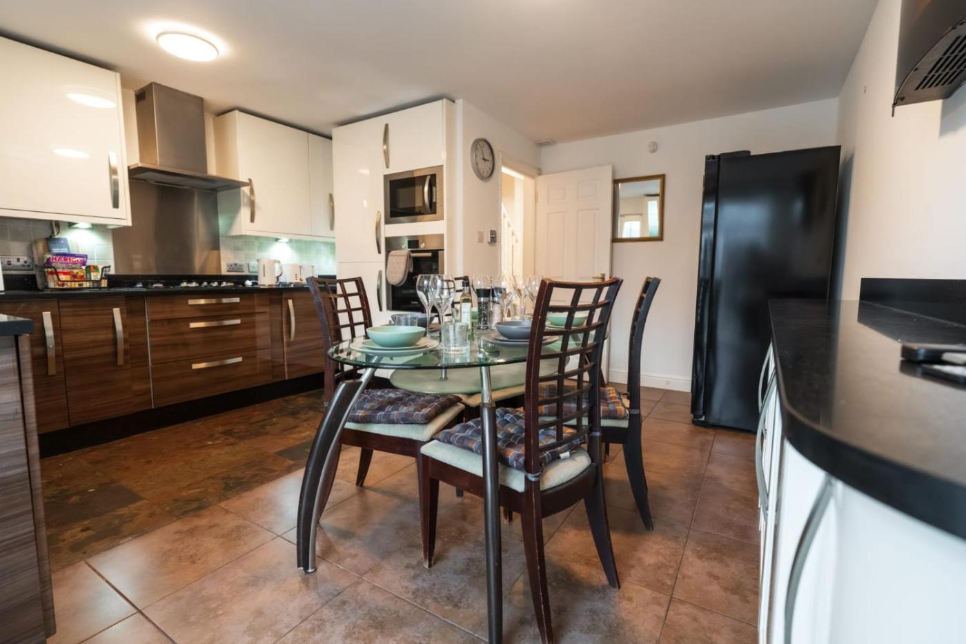 Four-Bedroom House. This holiday homes special feature is the fireplace. Featuring a private entrance, this holiday home also comprises 4 bedrooms, a seating area and 2 bathrooms with a bath and a shower. In the well-fitted kitchen, guests will find a stovetop, a refrigerator, a dishwasher and kitchenware. This holiday home features a washing machine, flat-screen TV with streaming services, garden views, as well as chocolate for guests. The unit offers 5 beds.