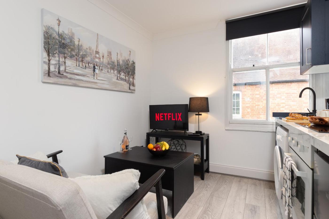 See the pricePhotos Cozy 1BR Flat, Train Station, Free Parking, WiFi, Smart TV
