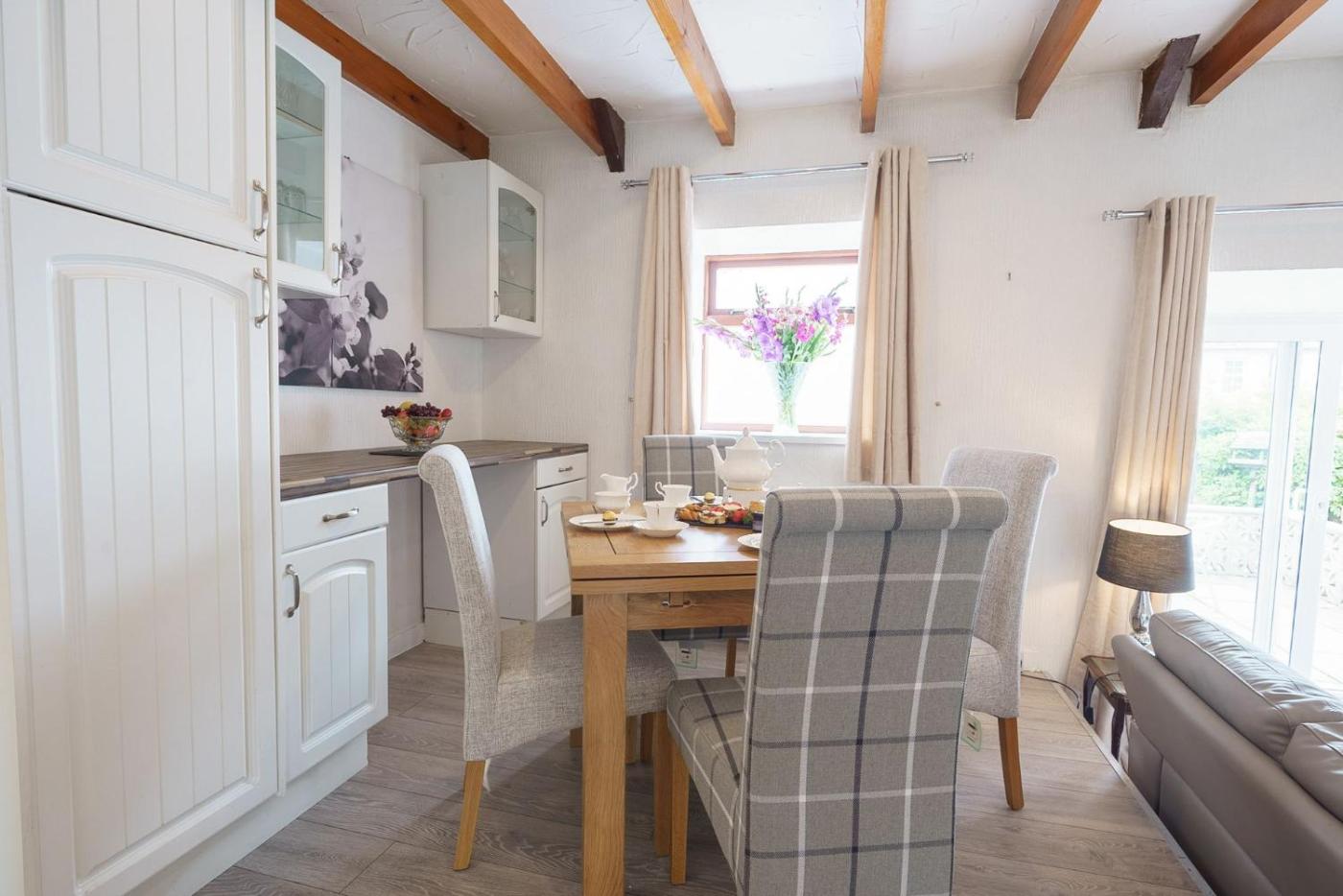 Holiday Home. This holiday home offers a hot tub. This holiday home comprises 1 living room, 2 separate bedrooms and 1 bathroom with a shower. The holiday homes kitchen, which features a refrigerator and a microwave, is available for cooking and storing food. Featuring a patio, this holiday home also provides a barbecue, a high chair for children and a TV. The unit offers 3 beds.